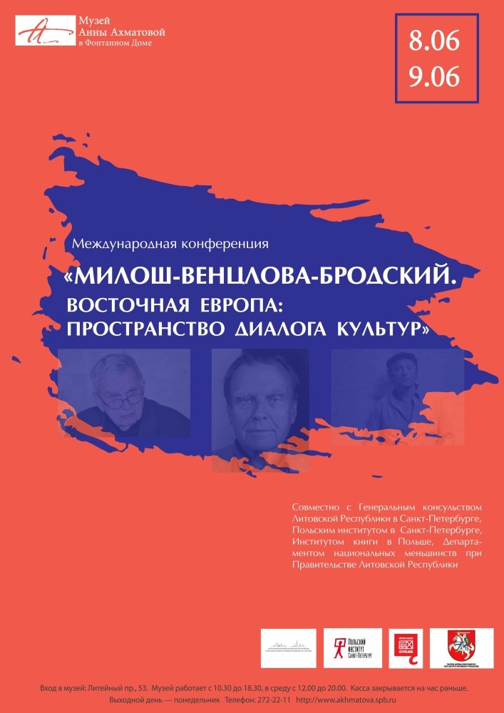 8-9 czerwca w Sankt Petersburgu, międzynarodowa konferencja „Miłosz-Venclova-Brodski. Wschodnia Europa: Przestrzeń dialogu kultur”.