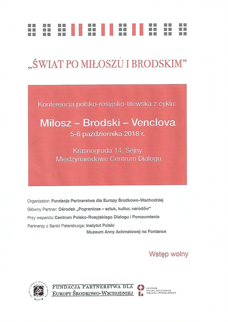 Spotkanie jest piątą edycją rozpoczętego w 2015 roku cyklu „Miłosz-Brodski-Venclova”. Po raz pierwszy odbędzie się w Polsce, dzięki wsparciu Centrum Polsko-Rosyjskiego Dialogu i Porozumienia. Poprzednie polsko-rosyjsko-litewskie debaty odbywały się w Instytucie Polskim oraz Muzeum Anny Achmatowej w Petersburgu.