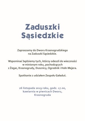 Podczas wieczoru wspominać będziemy zmarłych sąsiadów, którzy odeszli w minionym roku Żegar, Krasnogrudy, Dusznicy, Ogrodnik i Hołn Mejera.